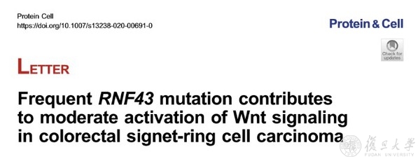 近日,复旦大学生物医学研究院研究员余发星研究团队与复旦大学附属肿瘤医院副主任医师彭俊杰及复旦大学放射医学研究所研究员华国强合作在《蛋白质与细胞》(Protein & Cell)杂志上发表了题为“Frequent RNF43 mutation contributes to moderate activation of Wnt signaling in colorectal signet-ring cell carcinoma”的文章。该研究通过对29例结直肠印戒细胞癌样本的全外显子测序,结合与腺癌、粘液腺癌的表达谱对比分析,揭示了这一罕见癌的分子特征。