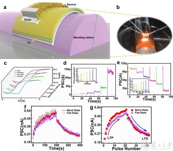 最近,复旦大学微电子学院科研团队利用二维层状MoS2制备具有光电协同调制功能的可穿戴仿人脑神经形态器件,首次实现可穿戴仿生神经突触器件的aJ级别超低功耗,远低于生物功耗水平,为超低功耗、多端调制的可穿戴式类脑计算器件的应用开辟了新的道路。相关成果以“Ultralow Power Wearable Heterosynapse with Photoelectric Synergistic Modulation”为题发表于Advanced Science 。微电子学院副研究员陈琳、研究员孙清清为文章的通讯作者。