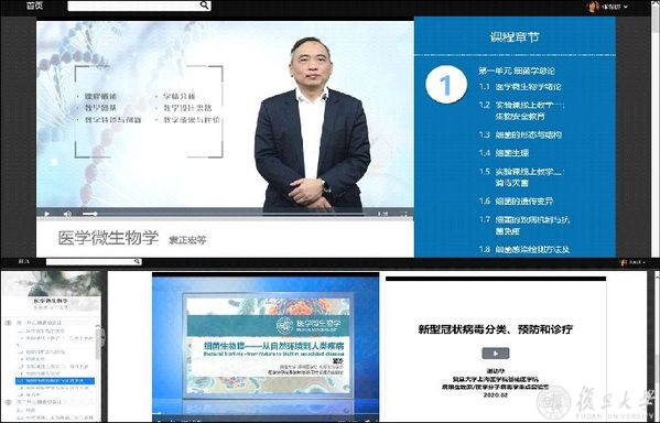 在3月23日正式上线开课的复旦大学上海医学院“医学微生物学”的在线课堂上,学生们可以在“云端”获取最新的学科前沿讯息。值得一提的是,基础医学院医学微生物学教学团队,正是在进行新冠课题攻关的百忙之中完成课程录屏及相关教学准备。