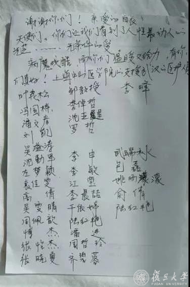 中山医院医疗队的脚踏实地、默默付出,赢得了武汉同道和病人的尊重和感谢。“等我自由了,找时间来看您,非常感谢您对我的细心照顾。”“从大上海过来支援我们大武汉,感谢你们的到来!感恩所有!希望你们能早日回家!” 有患者默默记下了照料她的上海医护们防护服上的名字:“我想看看你们每一位的容颜,但现在只能看到一模一样的你们。所以,我就在你们进出房间时把防护服后书写的名字记录下来了。”队员们说:“最开心的事情就是看到患者康复出院,有他们的理解和支持再辛苦都值了!”武汉同道感慨说:“复旦大学附属中山医院医疗队自接管我们病区以来,我一直被他们的团队合作精神和对病人的精心救治态度所鼓舞。我真的被他们感动了,武汉是我们的城市、我们的土地,我们应该坚守在这里,而他们是为了帮我们抢回土地、抢回家园而战斗!”