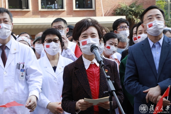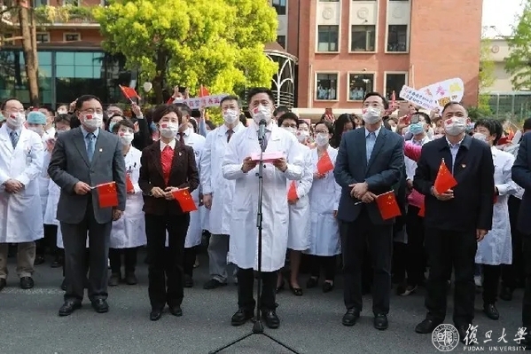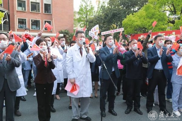 “如果说69天前,在中山先生的注视下,我们为你们送行,我的心情是豪壮却又有些担心的话,那么此时此刻,同样在中山先生的注视下,我们迎接你们回来,我的心里充满了胜利和感动的喜悦。”焦扬动情地说,“两个多月来,同志们大爱无疆、不辱使命。我代表学校和全体师生,向大家致以最衷心的祝福、最崇高的敬意和最深切的慰问!大家的英雄壮举,人民不会忘记,复旦更不会忘记。”