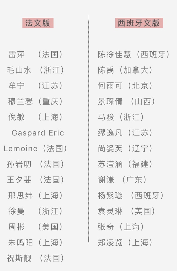 经加拿大皇家柯林斯出版集团委托外籍专家评审,最终分别从30份法文试译稿和37份西班牙文试译稿中各选定13人名单。