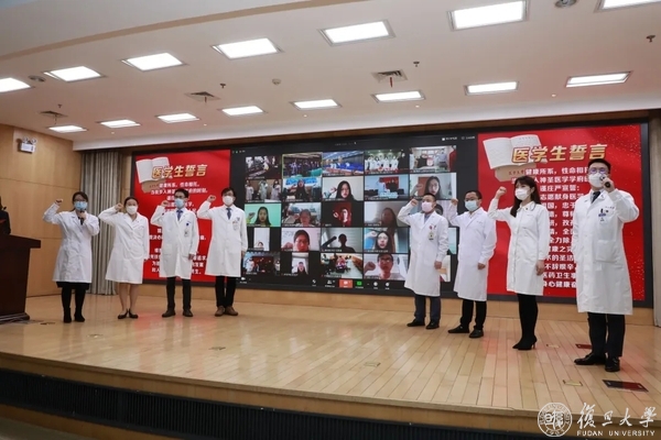 活动最后,在十大医务青年代表的带领下,线上线下共同重温医学生誓言,回溯传承从医初心。