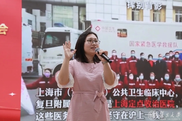 “‘医生,我的病还能好吗?我还有多久能出院?’这样的问题,在武昌方舱医院我们每天要回答两百多遍。虽然非常疲惫,但我们也耐心一一回答,因为对每个个体而言,这个答案都非常重要,而我们的回答,将抚平他们的创伤。”战“疫”青年讲师团成员、曾奋战在武汉抗疫一线的华山医院杨敏婕回顾了“华山战队”在方舱医院的奋斗历程。和她同台分享抗疫故事的还有复旦大学战“疫”青年讲师团的其他7位白衣战士。