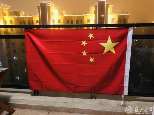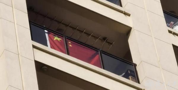 挂在阳台上的国旗