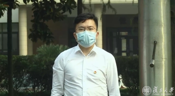 在升旗仪式的最后,复旦大学学生会主席陆祯严及复旦大学研究生会主席朱嘉星共同发出疫情防控期间复旦大学在校学生行为规范倡议,号召返校学子为校园安全尽自己的一份力。