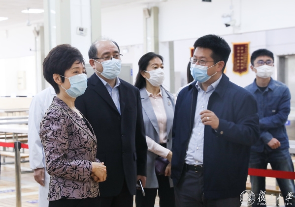 焦扬一行先后来到江湾生活园区和邯郸校区南苑生活园区、南苑食堂,察看学生返校和核酸检测流程,了解研究生和本科生返校以及就餐情况,对学校落实的各项疫情防控措施给予了充分肯定。