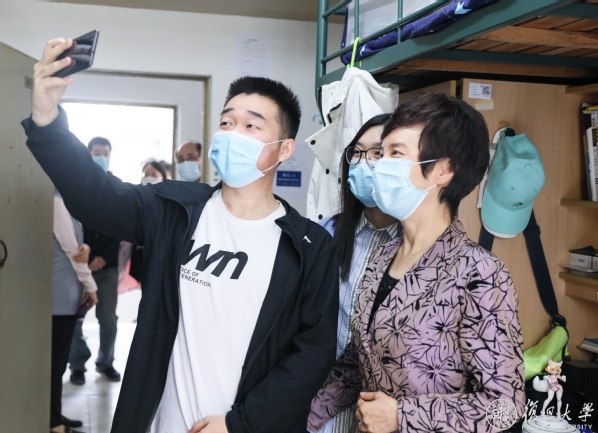 “毕业论文写完了吗?”“工作找得怎么样了?”“回到学校以后适应吗?“吃饭和洗澡方便吗?”“有什么不满意的地方和我们说。”在江湾生活园区2号楼和邯郸校区南苑生活园区9号楼,焦扬走访了返校毕业生,细心询问同学们的学业进展、就业去向和生活状况。