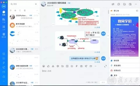 群码永久有效,只有属于复旦组织的用户才能扫码入群;可以将群公告置顶,新人入群必看,同时可以设置入群可看100条历史记录,使得初时建群工作量省时省力。界面风格类似于微信,易于入手使用。