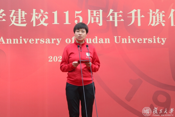 “115年前,马相伯带领爱国师生创立复旦公学,成为中国人自主创办的第一所高等院校。从此,‘复旦’这个寄寓教育救国、复兴中华宏大理想的名字登上了历史舞台。”焦扬在讲话中回顾了复旦创校的历史,她表示,115 年来,走过筚路蓝缕的创业历程,克服波急浪涌的艰难险阻,闯出蔚为壮阔的发展之路,从一所民间筹资创办的小学校,逐渐成长为一所文社理工医学科门类齐全、国际知名的综合性研究型大学,在中国和世界高等教育的发展长河中书写着自己的篇章。115年的时间可以改变很多,但始终不变的是复旦忠诚爱国、矢志报国的红色之魂,追求卓越、争创一流的强校之梦,服务人民、造福社会的奉献之心,同心同德、永久奋斗的师生之力。