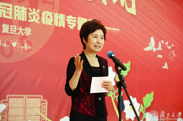 焦扬首先代表学校,向每一位无私捐赠珍贵抗疫实物的白衣战士表达由衷感谢。她指出,面对疫情,复旦的援鄂战士与全国各地白衣战士一起,以一往无前的精神和不破楼兰终不还的气概白衣执甲、逆行出征。坚守在上海抗疫一线的医护人员以无畏敬业、无私奉献守护超大型城市的安全。无论在武汉前线还是上海抗疫一线,这些最可爱的人将“团结、服务、牺牲”的复旦精神和“正谊明道”的上医院训诠释得淋漓尽致。如今,山花烂漫,英雄凯旋,人们已在阳光中开启新生活。