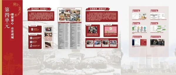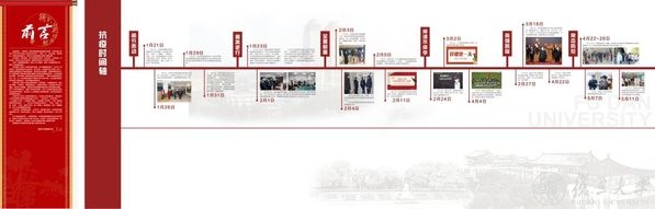 图文展区通过“党的领导 统揽全局”“白衣执甲 不负重托”“科研攻关 助力抗疫”“凝聚爱心 众志成城”“春暖花开 校园平安”“全球同心 共抗疫情”六大篇章,特别设置了时间轴,次第展现了自1月21日学校成立疫情防控领导小组至学生有序返校为止的各重要时点,精选250余张图片资料、图示素材,忠实记录、生动展现党委集中统一领导、学校疫情防控部署、 医务人员“最美逆行”、 “停课不停学”、校友爱心汇聚、助力全球抗疫等重要工作,全面立体地诠释了新时代“团结、服务、牺牲”的复旦精神。