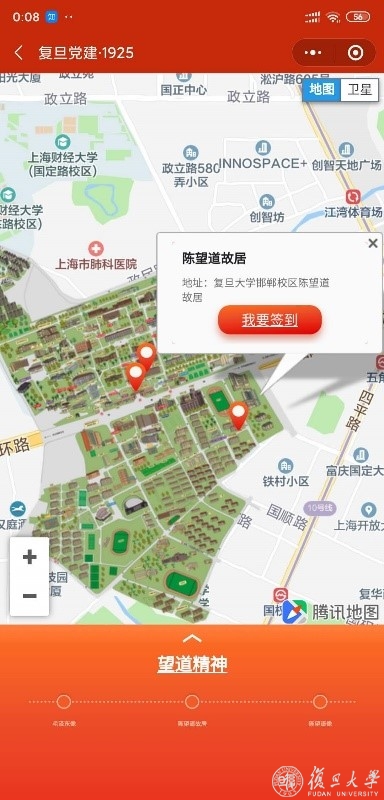 线上定制红色定向路线,一边到现场学习,一边在线上打卡,结束后分享在自己的党建活动圈,是不是听起来很酷?这些在“复旦1925”小程序中都能实现。