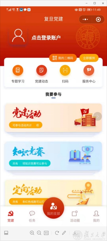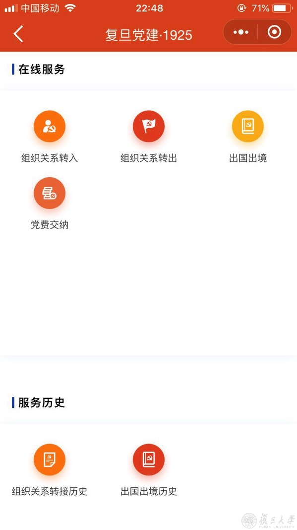 打开“复旦·1925”小程序,党员师生们可在线上服务中心轻松搞定与自己有关的党员事务。
