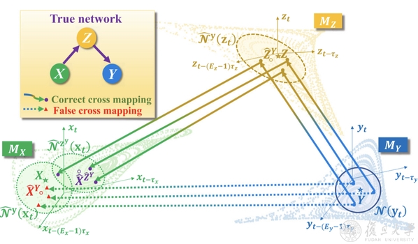 传统基于统计学和信息论的因果分析方法,如格兰杰因果关系、传递熵等方法,需要变量因素之间具有可分性条件,即需要将原因信息从结果信息中分离出来。然而在现实世界中,特别是非线性复杂动力系统所产生的多维度时间序列中,这样的可分性条件是无法得到满足,因果机制往往交织在同一个时间序列之中。另一方面,由于因果关系在多变量之间的传递性,而直接因果关系才能反映现象之间本质的内在机制,因此发展有效可靠算法,区分复杂动力系统中的直接与间接因果,也成为了重要科学问题。面向这些问题,本项研究利用动力系统理论清晰阐明了可分性条件的严格数学机理,并综合利用相空间重构、交叉映射、偏相关系数等动力学与统计学相关算法,建立了新型偏交叉映射方法,实现了非线性动力系统中直接因果与间接因果的区分,从而为在大规模数据中辨识可信的因果网络提供了可靠算法。该算法已被用于生态系统、环境与疾病互作系统以及基因调控网络等多个实际问题中,成功复现了这些复杂动力学演化系统的内蕴因果网络,为进一步理解系统演化的基本机制提供了方法学基础。