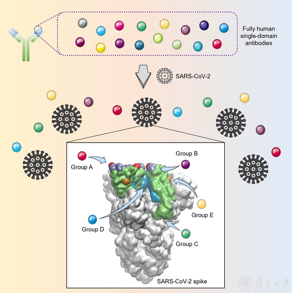 新冠病毒已导致全球数百万人感染,目前尚无针对其的特效药物。因此,亟需开发安全有效的抗病毒抗体,为抗击新冠病毒提供新型药物和治疗方案。近期,复旦大学基础医学院应天雷团队在抗新冠抗体药物研发方面取得重要进展,发现了一系列抗新冠全人源纳米抗体,可靶向新冠病毒受体结合区上的五类不同表位。该成果于近日在《细胞》(Cell)杂志子刊Cell Host & Microbe上发表。