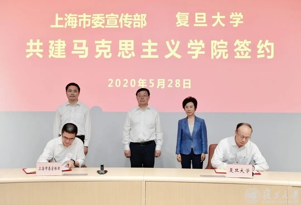 上海市委宣传部与复旦大学续签新一轮共建马克思主义学院的协议。