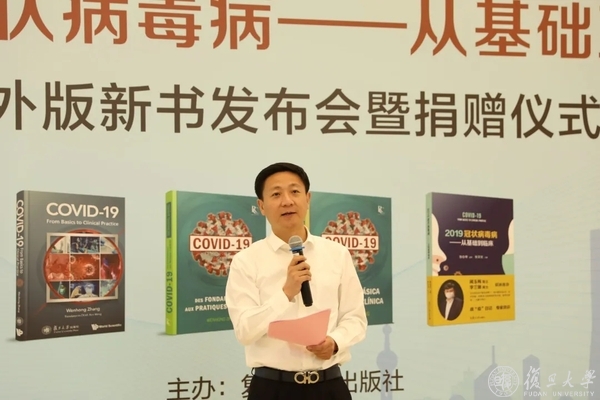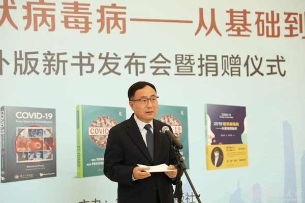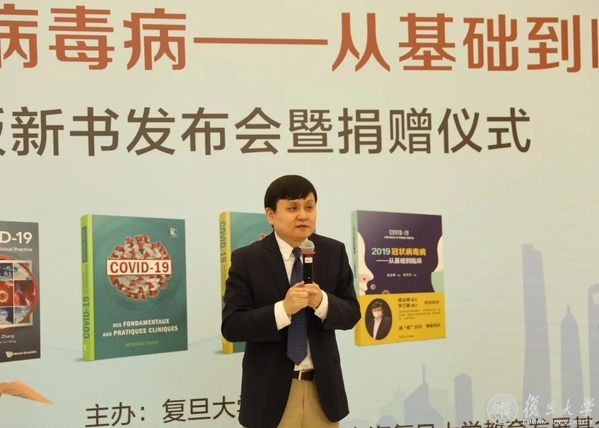 6月5日下午,由上海医疗救治专家组组长、复旦大学附属华山医院感染科主任张文宏教授主编的《2019冠状病毒病——从基础到临床》海外版新书发布会暨捐赠仪式在复旦大学图书馆医科馆举行。