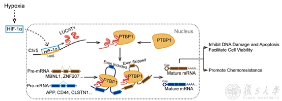 1月21日,《分子肿瘤》(Molecular Cancer)杂志在线发表了何祥火研究团队论文《缺氧诱导长非编码RNA LUCAT1通过PTBP1可变剪接通路调节癌细胞活性及化疗治疗反应》(“Hypoxia induced LUCAT1/PTBP1 axis modulates cancer cell viability and chemotherapy response”)。该研究发现了一个能够显著受缺氧诱导上调的长链非编码RNA LUCAT1与PTBP1结合,调控下游DNA损伤与凋亡相关基因的可变剪切,调控肠癌细胞的细胞周期、DNA损伤与凋亡。LUCAT1能够促进肠癌细胞在体外与体内的生长,以及肠癌细胞在体外和体内对于化疗药物的抵抗。LUCAT1在肠癌组织中显著上调,并且对高表达LUCAT1的肠癌病人往往有着较差的预后和较差的化疗效果。