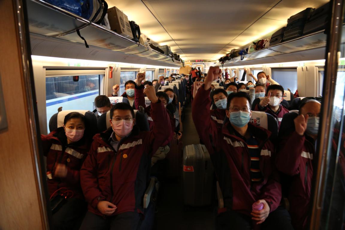 2020年2月4日华山医院国家紧急医学救援队出征前往武汉的高铁上