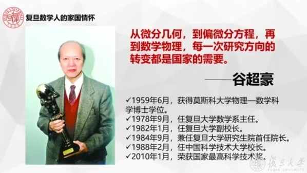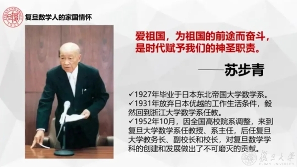 “苏步青先生放弃日本优越的工作生活条件,毅然回国任教;谷超豪先生为了国家需要,一次次转变研究方向;八十多岁高龄的李大潜先生依然坚持每年给数院新生上‘开学第一课’,教导学生将个人前途和命运与国家紧密相连。”在教学视频最后,谢启鸿描绘出复旦数学星空的图景,老一辈复旦数学人的家国情怀与时代担当熠熠生辉。