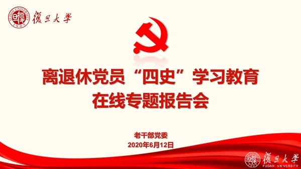 6月12日上午,老干部党委举行全校离退休党员“四史”学习教育线上专题报告会。复旦大学党委副书记、副校长周亚明在线出席专题报告会并讲话,复旦大学原党委书记、校关工委顾问钱冬生作专题报告,老干部党委书记、老干部工作处处长邵瑜主持会议。