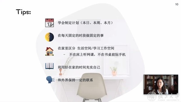6月17日上午,以“新冠疫情下的学习管理”为主题,由复旦大学承办的“教育部留美学子线上健康咨询和诊疗服务平台”系列讲座第三场开讲。
