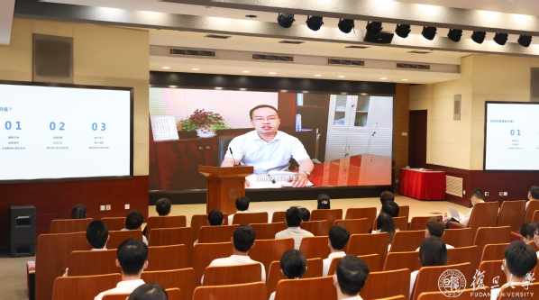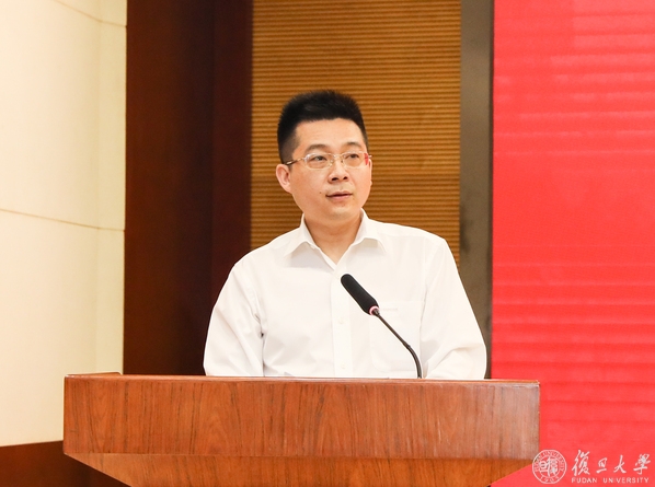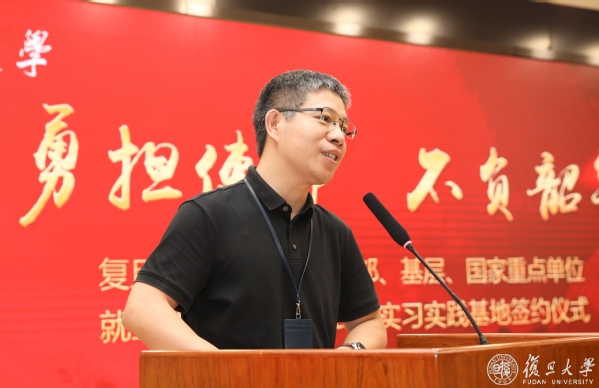 中国宝武钢铁集团有限公司党委组织部部长、人力资源部总经理、党委统战部部长、老干部工作部部长汪震作为国家重点单位代表对复旦输送高质量人才表示感谢,对优秀学子加入宝武事业表示欢迎,希望同学们在干事创业中历练,在担当尽责中成长,勇于做时代前列的奋进者。