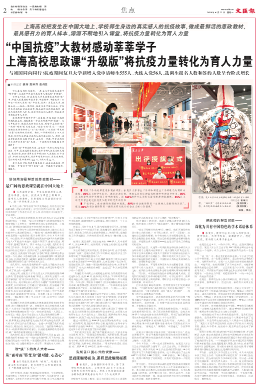 上海高校把发生在中国大地上、学校师生身边的真实感人的抗疫故事,做成最鲜活的思政教材、最具感召力的育人样本,源源不断地引入课堂,将抗疫力量转化为育人力量
