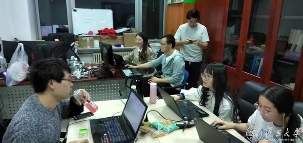 冀渤匀所在团队深夜加班照片(左一为冀渤匀)
