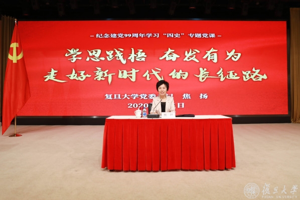 7月1日,复旦大学党委书记焦扬主讲庆祝建党99周年学习“四史”专题党课,和师生党员一起学习习近平总书记重要回信精神,在学思践悟中坚定理想信念,在奋发有为中践行初心使命。