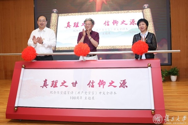 7月1日,纪念陈望道首译《共产党宣言》中文全译本100周年巡展在杨浦区国歌展示馆开幕。中共杨浦区委常委、宣传部部长刘东昌,上海市档案局(馆)副局(馆)长郑泽青和复旦大学档案馆馆长黄岸青出席开幕式,并为“真理之甘·信仰之源”主题巡展揭幕。