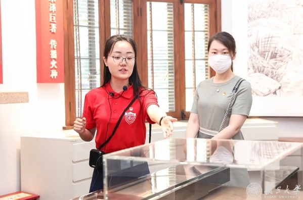 在党员志愿服务队队长,复旦大学新闻学院2018级博士生钱威丞的记忆里,第一次走进望道旧居为支部党员讲解的情形仍很清晰。站在旧居二楼的房间,看着望老为新闻系亲笔提写的系铭“好学力行”,他感到“如同穿越时空,与老校长相遇”。他说,人们与望老在旧居里的每次“相遇”,都更像是一次隔空的精神交流,望老的话语、思想、精神、信念通过志愿服务队的讲述,在这里得到传播。“这可能也是我们这支队伍能为红色基因传承所作的贡献。”