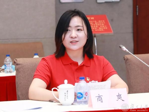董树婷通过视频发言分享了在讲解服务中的难忘经历,并为自己立下目标:做先锋讲解员,传播好思想的温度;做好研究者,挖掘好学术的宝藏,为讲解提供切实支撑;做好传播者,在更大范围内讲好红色故事。她说,无论是讲解员、研究者还是传播者,这些角色的根基都在于对于望道故事的追寻与研究,都源自于复旦后生对于复旦先贤精神的追思与学习。“我们是可爱、可信、可为的一代,更要用学思践悟的方式做有理想、有本领、有担当的一代,拿好历史的接力棒,接续奋斗。”