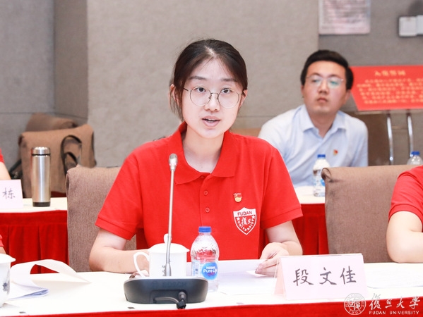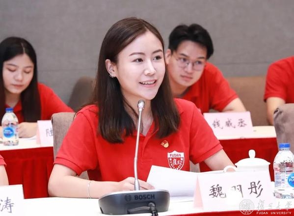 会上,马克思主义学院2018级硕士生董树婷、国际关系与公共事务学院2018级博士生陈醉、马克思主义学院2019级博士生商爽、党委教师工作部教师魏羽彤、药学院2019级博士生段文佳先后作重点发言。