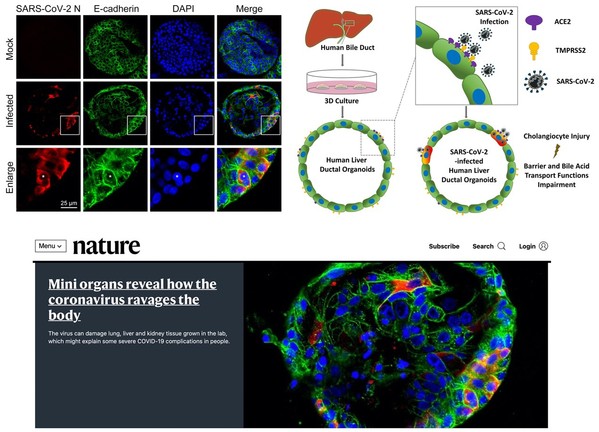 人源类器官回答新冠病毒感染和损伤肝脏机制成果获《自然》新闻报道和首页图片高亮