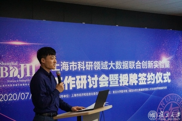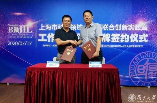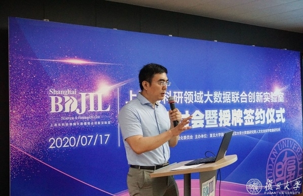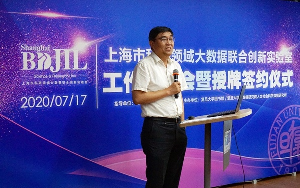7月17日下午,上海市科研领域大数据联合创新实验室工作研讨会暨授牌签约仪式在复旦大学经世书局光华厅举行。复旦大学副校长陈志敏、市教委信息中心主任王明政和市经信委信息化推进处薛威等出席会议并致辞。实验室联合共建单位代表、上海市信用领域大数据联合创新实验室(以下简称“信用实验室”)代表,复旦大学大数据研究院副院长薛向阳、文科科研处处长顾东辉、复旦大学出版社董事长严峰等参加会议。复旦大学图书馆党委书记、常务副馆长侯力强主持活动。