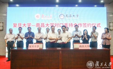 7月24日,复旦大学—南昌大学对口合作协议签约仪式在南昌大学举行。南昌市委副书记、市长黄喜忠,省委教育工委书记叶仁荪,南昌大学党委书记喻晓社、校长周创兵,复旦大学常务副校长、上海医学院院长桂永浩,复旦大学上海医学院党委副书记、纪委书记杨伟国出席会议。中国科学院院士、副校长江风益主持会议。