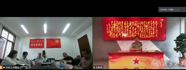教师党员现场观看了“兵哥说党史”系列短视频,并视频连线了其主创团队代表,复旦大学2005届中文系校友、现任武警上海总队执勤第四支队副政委的王磊强同志。