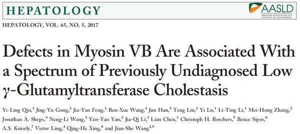 图3. MYO5B缺陷导致低GGT胆汁淤积症疾病谱系,2017年发表于Hepatology