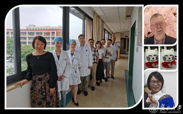图2. 部分上海研究团队成员:左侧,从前往后依次为栾维莎博士后(共同第一作者)、郝陈指博士(共同第一作者)、陆怡医生、谢新宝博士、库尔班江博士、李忠蝶硕士生、丘倚灵博士后、卢仕琪硕士、王建设医生(通信作者);右侧上,肝病科病理顾问Alexander Knisely教授;右侧下,黎佳琪硕士(共同第一作者)。