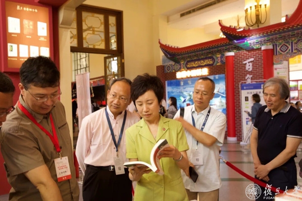 焦扬书记视察复旦大学出版社展台