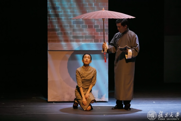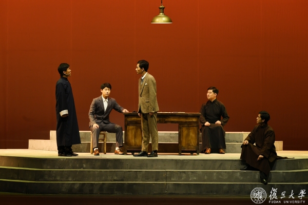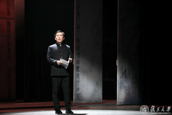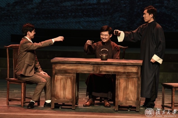 同往年一样,本次大师剧全体演员均为复旦师生。今年的演员队伍更为多元,有往年参演过大师剧的资深演员、有在新生入学时观看大师剧后慕名而来的本科生、有学生辅导员、有青年教师……演员们自7月起在校集中排练,相互磨合,不断研读剧本、提升演技,在“复旦人演复旦大师,复旦人说复旦故事”的过程中,不仅提升了演绎水平,更实现了作为“宣言精神”忠实传人的精神蜕变。从导演到制作,从舞美到灯光,从造型到音响……最终舞台效果的呈现离不开剧组的精益求精。