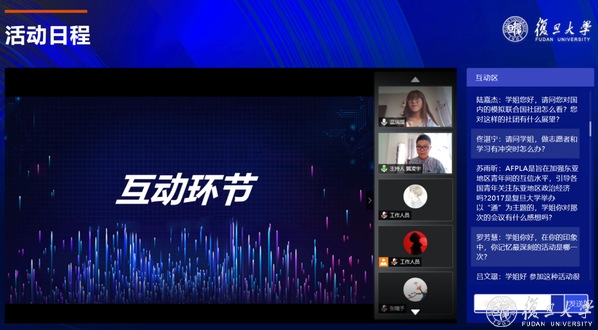 复旦分营的最后一项活动,是由复旦大学的本科生郭天成、温瑞琪、朱思窈、张曦予为营员们带来的“朋辈互动交流”。营员们在分享会中聆听了学长学姐们的抗疫服务经历和学术故事,从复旦青年担当和学术创造视野两个维度了解了大学生活。