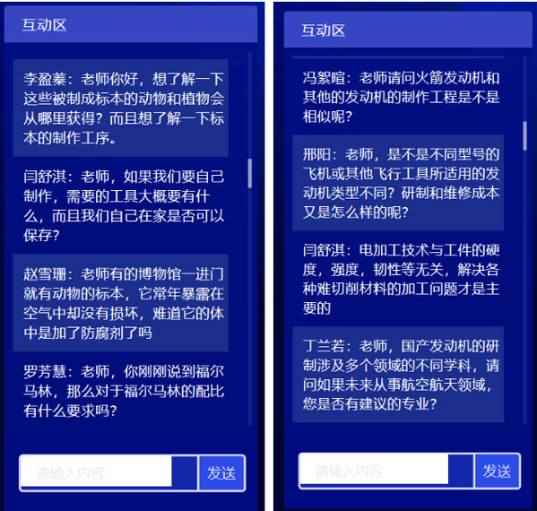 计算机科学技术学院的张文强老师为营员们带来了“人工智能与机器人”讲座,用深入浅出的方式介绍了人工智能的定义、前沿研究方向与未来走势,激发了营员们的浓厚兴趣。航空航天系费成巍老师的“浅谈航空发动机的发展与现状”讲座化繁为简,用直观的方式讲述了航空发动机的发展历程、分类、设计原理等内容。在“线上祖嘉生物博物馆VR参观”课程中,营员们云参观了复旦祖嘉生物博物馆,通过标本展览,学习了各物种的生物特性以及标本制作的相关科学知识。