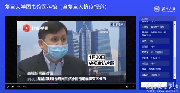 在“云游大学校园”栏目中,营员们通过视频、图片和文字介绍,打卡了复旦大学的老校门、校史馆、相辉堂、光华楼、正大体育馆、图书馆(医科馆)等地点,被百年复旦的文化底蕴和历久弥新的红色基因深深震撼。