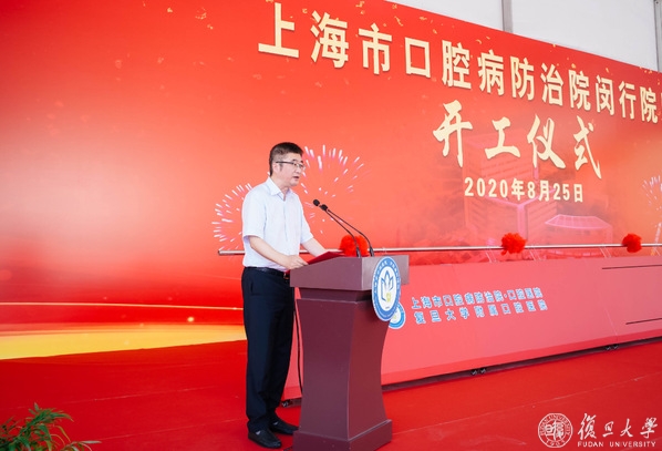市卫健委主任邬惊雷,复旦大学常务副校长、上海医学院院长桂永浩,申康医院发展中心副主任陈睦、闵行区分管领导以及上海市口腔病防治院院长刘月华等出席仪式并致辞;申康中心党委书记、主任王兴鹏宣布开工;出席仪式的还有闵行区区委副书记、组织部部长王观宝,复旦大学上海医学院副院长吴凡以及上海建工集团领导等;仪式由市口腔病防治院党委书记陈正启主持。