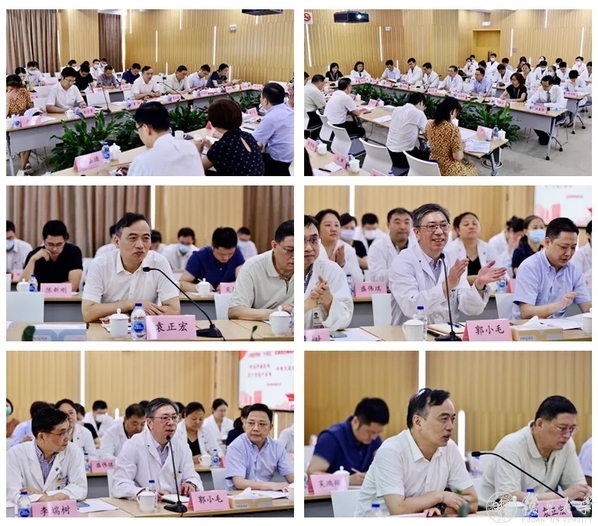 随后,复旦大学上海医学院领导及医学院各相关职能部门负责人来到西区小报告厅,开展“十四五”规划编制专题调研活动。会上,郭小毛院长汇报了医院“十三五”规划总结和“十四五”发展展望。上海医学院党委组织部、党政办公室、医院管理处、学科规划与“双一流”建设办公室、科研处、研究生院、教务处、人事与人才办公室等部门作交流发言。