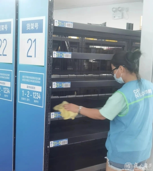 在快递服务方面,为保障同学们第一时间安全取到包裹,菜鸟驿站做了充足准备,对站点内设施设备进行消毒清洁,要求取件师生进站测量体温并登记信息,对包裹信息进行记录并快速上架出库,保证每一个包裹安全到达学生手中。