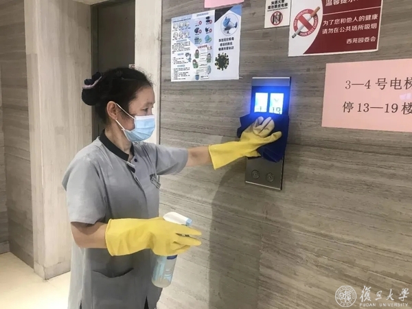 在学生园区消毒防疫方面,坚持每天4次对学生公寓公共区域门把手、电梯按钮等部位进行消毒,相关消毒记录及时在公寓一楼显著位置进行公示。学生入住学生生活园区后,物业承担24小时应急消毒任务。